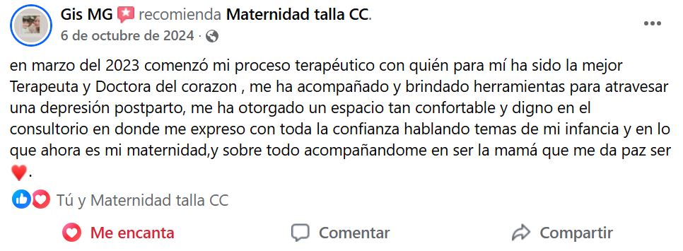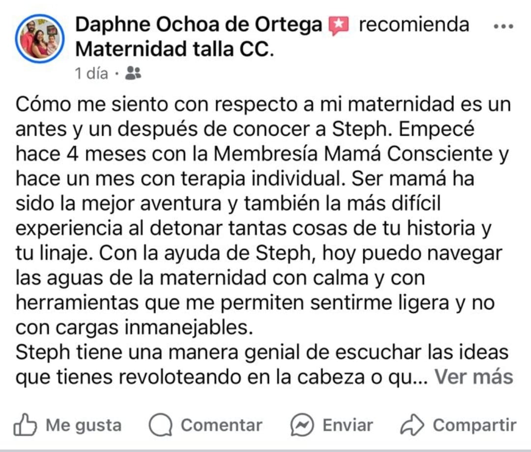 Es un espacio de acompañamientoprofesional diseñado para mujeres que maternan y que desean vivir su maternidad de la mano de herramientas psicoemocionales. El objetivo se centra en construir una maternidadsin tantas culpas, con más calma y más confianza en ellas mismas, una maternidad con consciencia y confianza, una maternidad tallacc.
