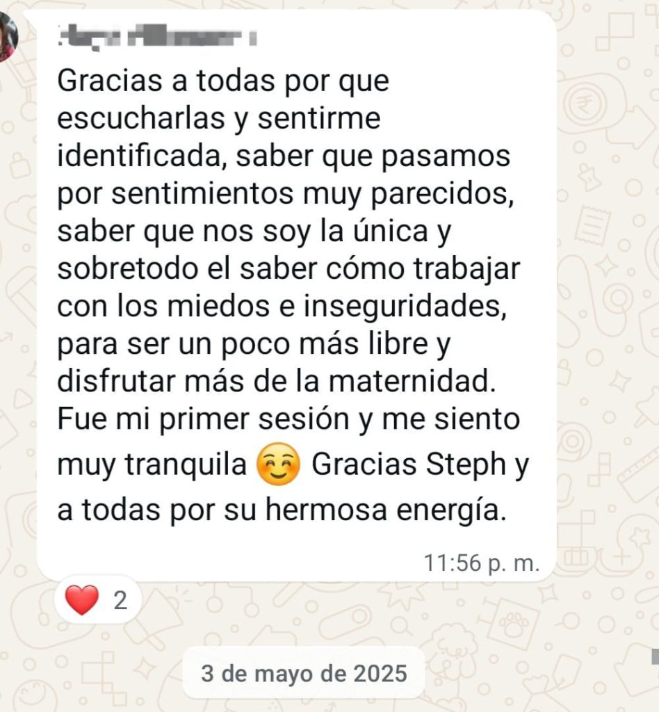 En este espacio te acompaño a darle claridad a algo que especificamente estés necesitando resolver, algo en tu maternidad, tu crianza o en la vida. En esta sesión te daré herramientas puntuales con el objetivo de qué sepas por dónde empezar y logres dar ese primer paso.
